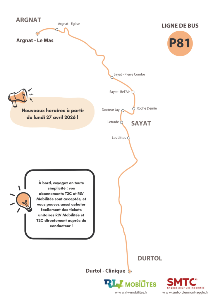 Nouveaux horaires : ligne P81 Sayat-Durtol