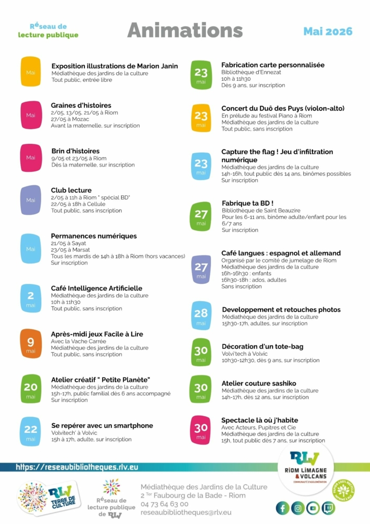 Programme des animations du mois de mai sur le réseau des bibliothèques R...